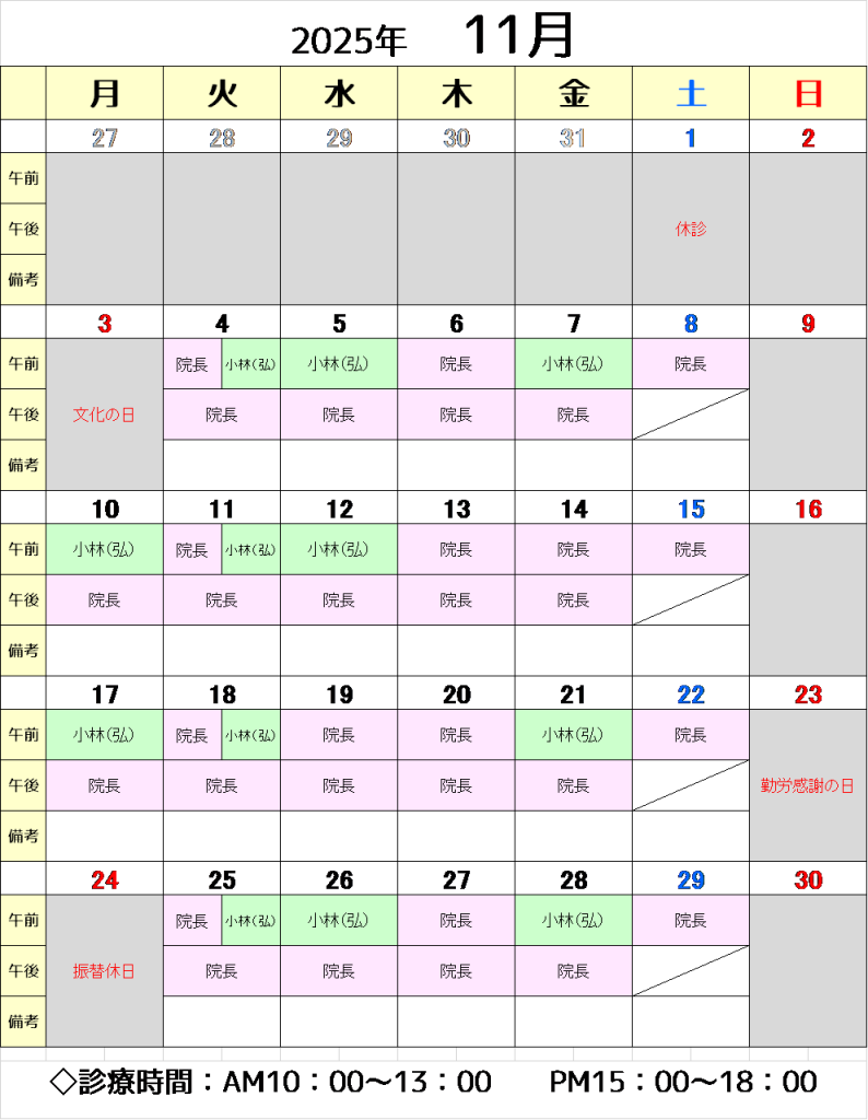 11月診療カレンダー
